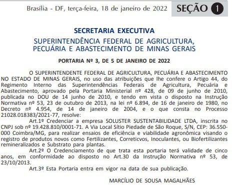 A Soluster é uma empresa credenciada pelo Ministério da Agricultura, Pecuária e Abastecimento (MAPA) para a realização de pesquisas de eficiência agronômica, assegurando o rigor técnico e a confiabilidade exigidos nos processos de validação de novos produtos para uso agrícola.